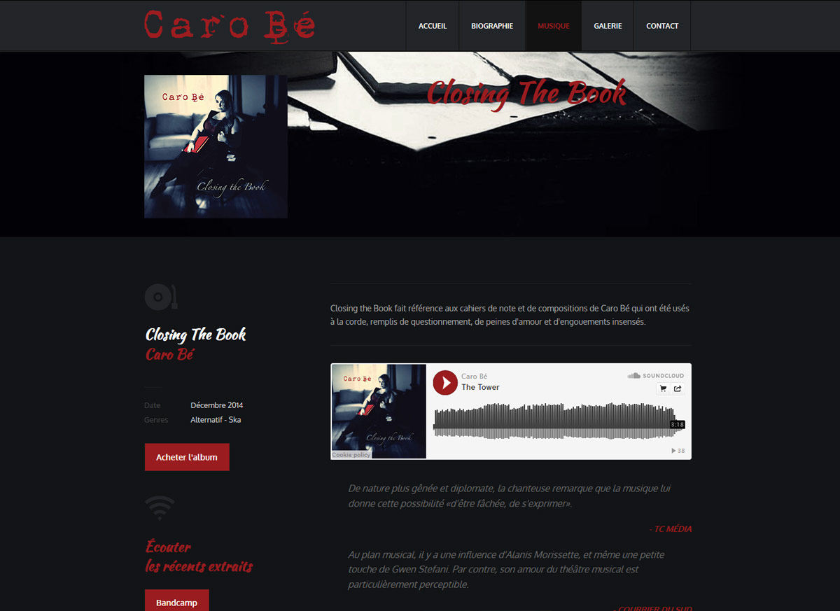 Un site Web pour une jeune auteure-compositrice-interprète.
