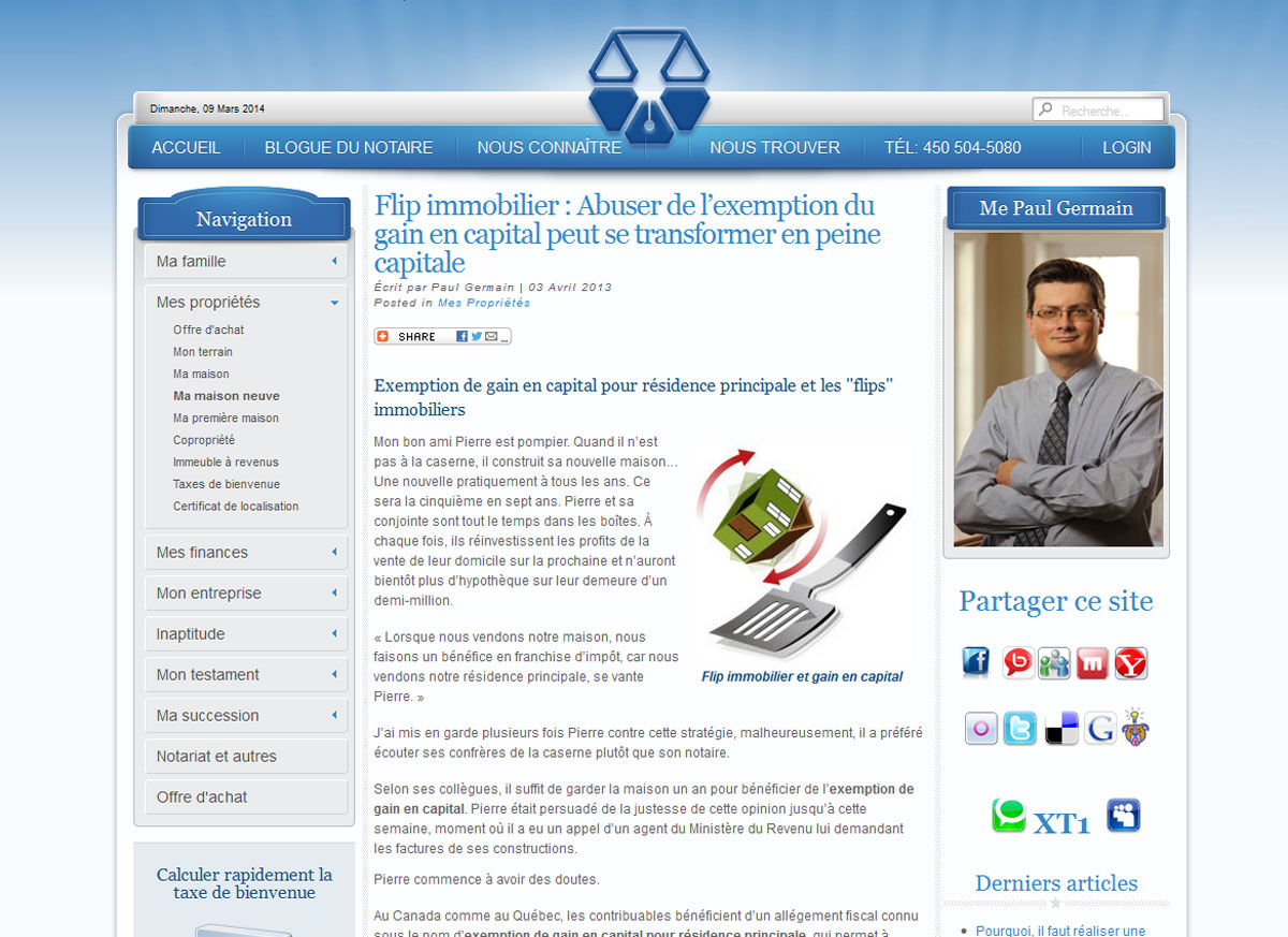 Un site Web professionnel, avec articles et outils intégrés sur une plateforme CMS.